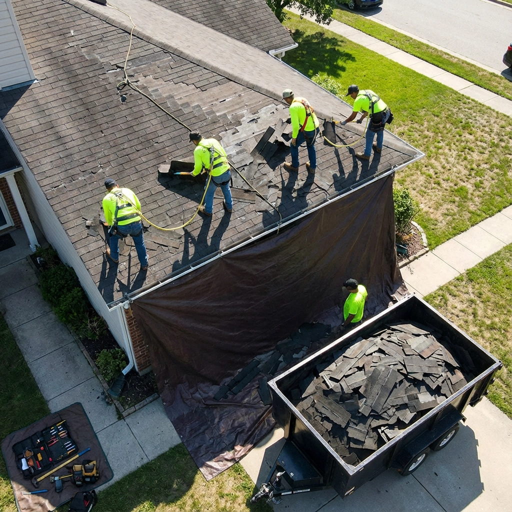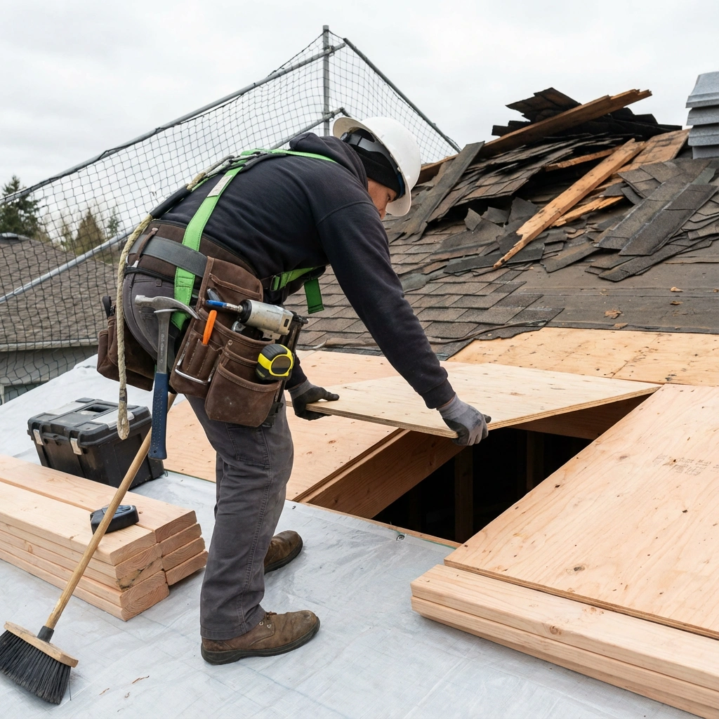 Roof failure doesn’t wait for business hours. If you have active leaks, tree damage, or missing shingles exposing your home, call us immediately.